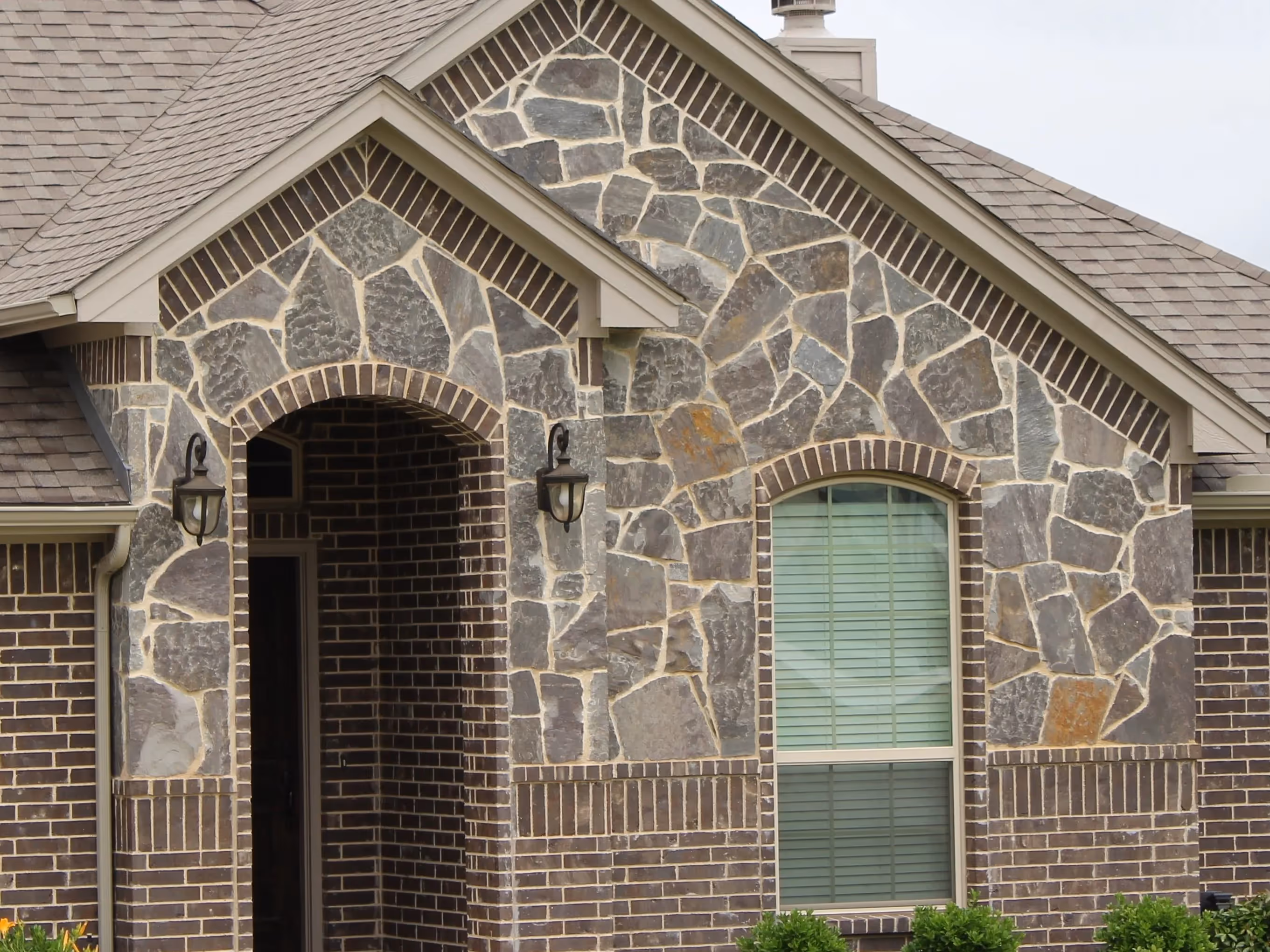 This stone is heavy on the grey and charcoal, with dots of dark brown and rust that add the color to this sandstone.